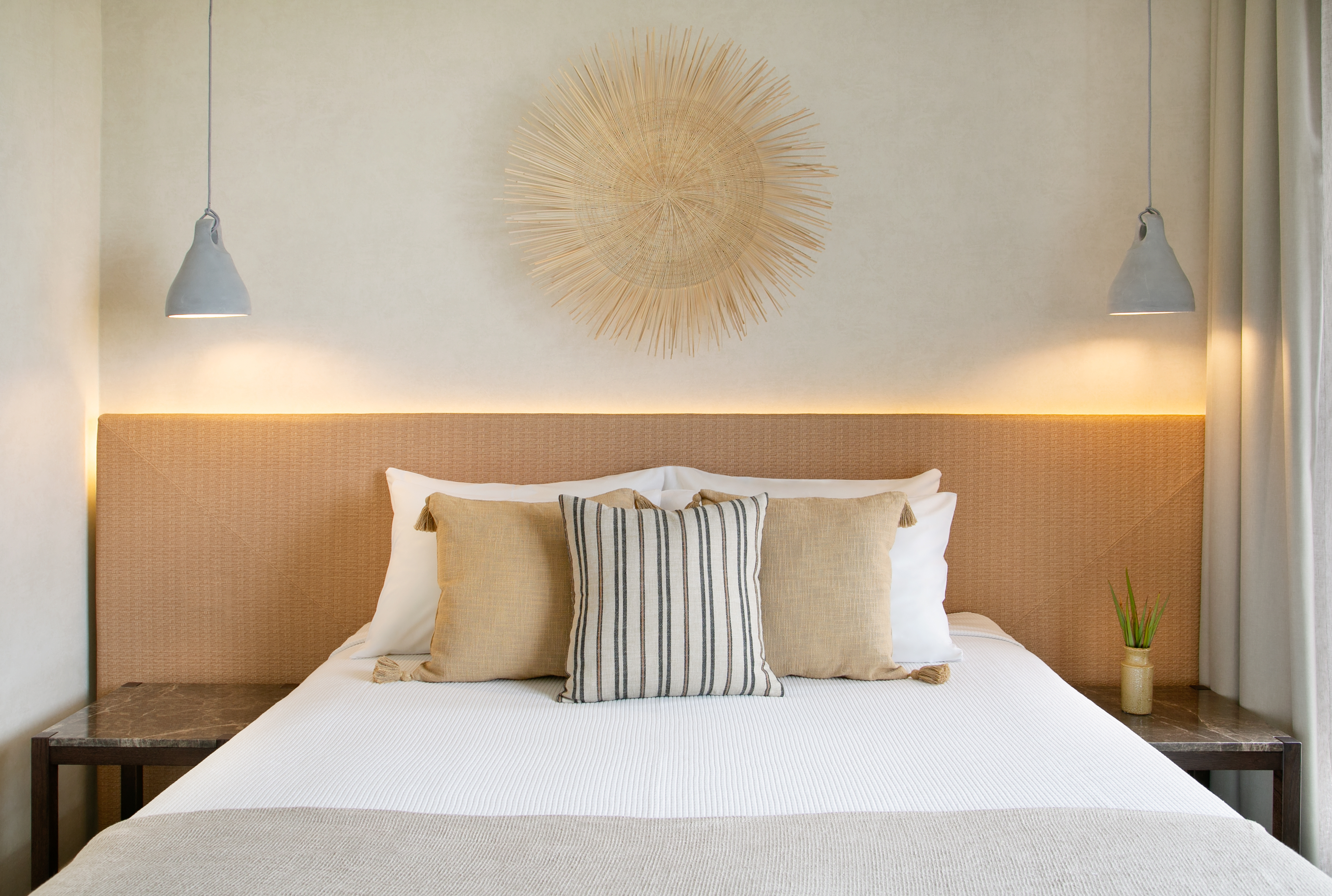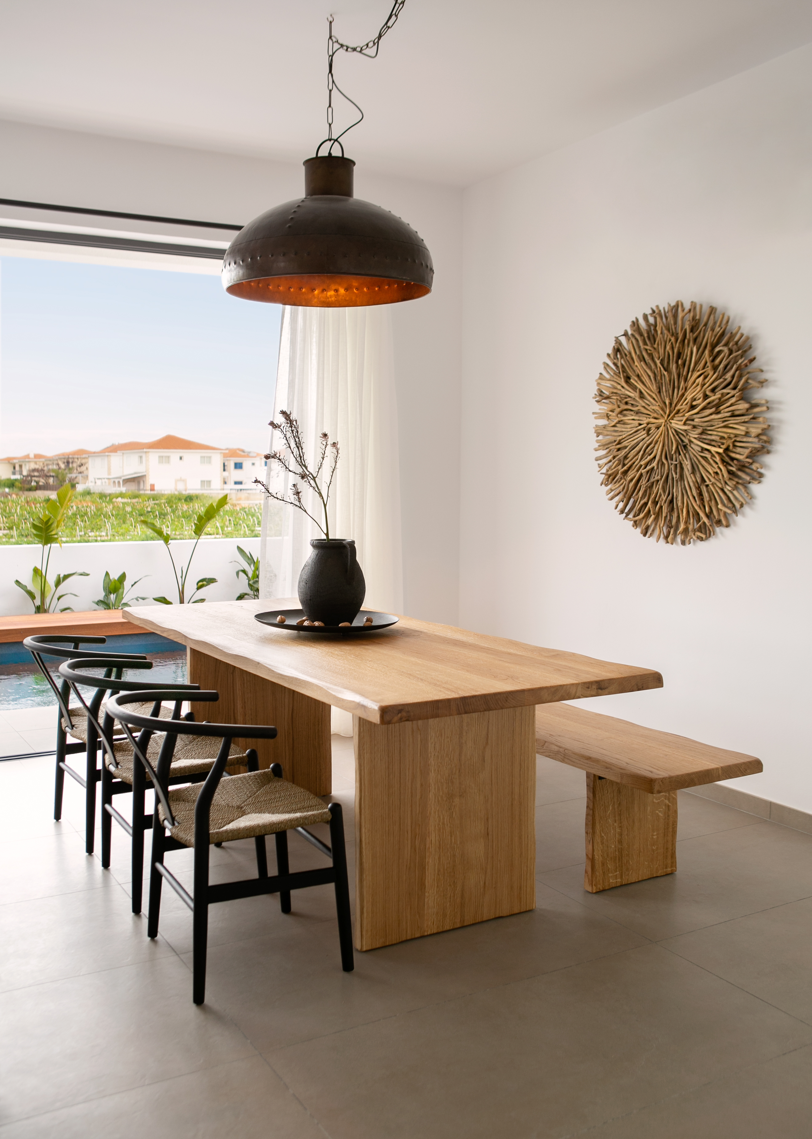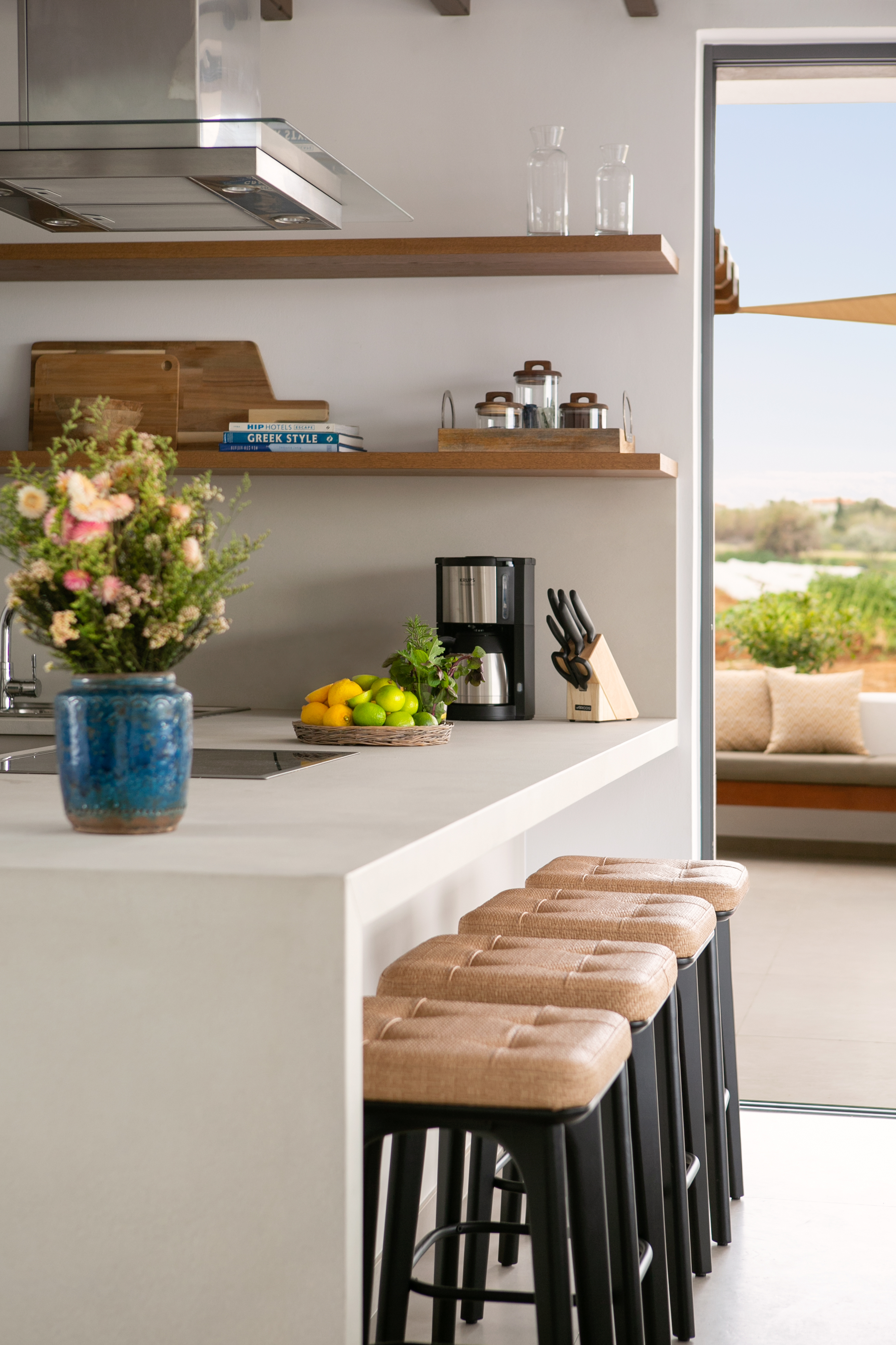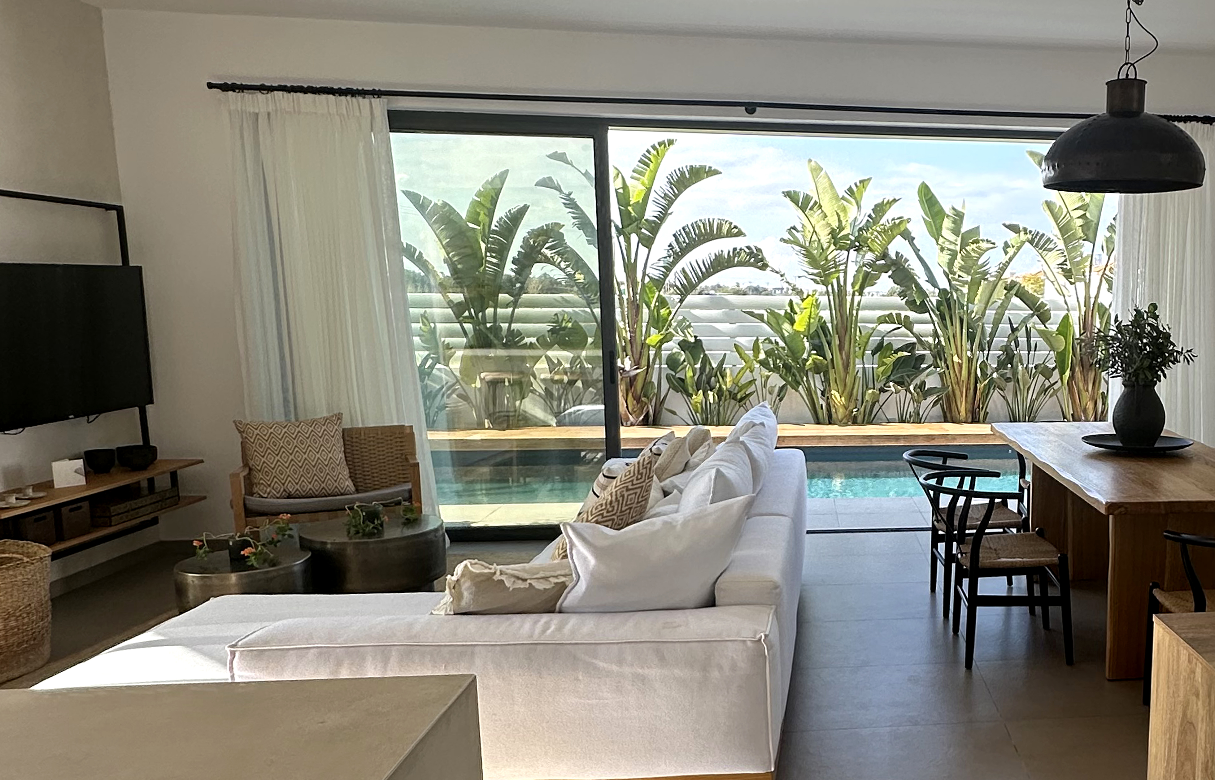 The villa includes 3 spacious bedrooms all with en-suite bathroom with walk-in shower, a kitchen area, a dining room, a living room, a guest toilet, a garage, a beautiful roof garden with a fire pit and a cocktail bar. It also provides a ground floor barbecue area with dining al fresco patio, sunbeds and umbrellas.