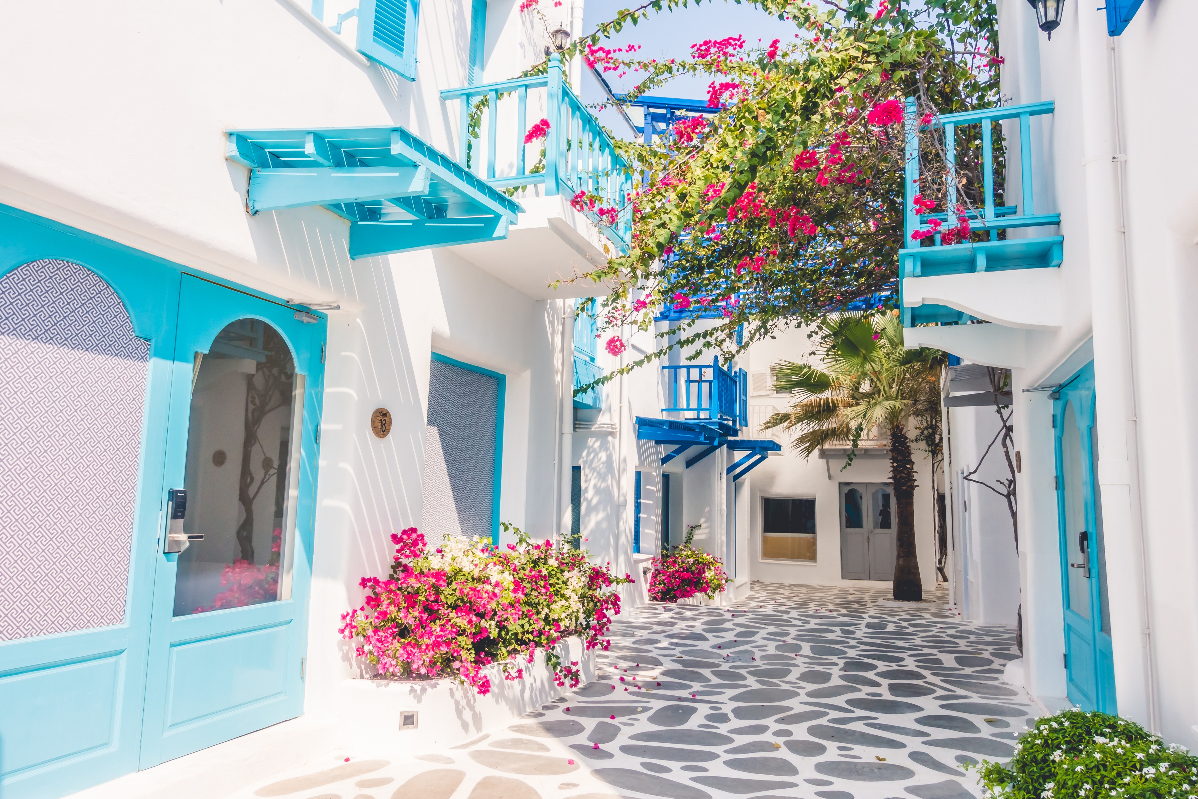 Mykonos peut ressembler à une destination grecque traditionnelle et décontractée, mais parmi les maisons blanchies à la chaux et l'architecture vénitienne se trouvent les clubs et les boutiques qui font la renommée de cette île. Le jour, rendez-vous sur l'une des 300 plages. Toutes ont du sable doré, la plupart ont des transats et beaucoup offrent la possibilité de plonger dans des eaux pleines de vie marine. De petits villages sont éparpillés dans le paysage, et des icônes emblématiques comme les moulins à vent et le complexe de cinq églises de Panagia Paraportiani sont fascinants ; mais le principal centre de vie est la ville de Mykonos.