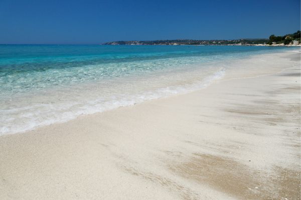 Avithos Beach, located near the village of Svoronata, is a beautiful sandy beach with clear, shallow waters, making it another excellent option for families. The beach is flanked by two tavernas known for their local dishes and stunning sea views. Avithos offers a relaxed vibe, with the added convenience of sunbeds and umbrellas.