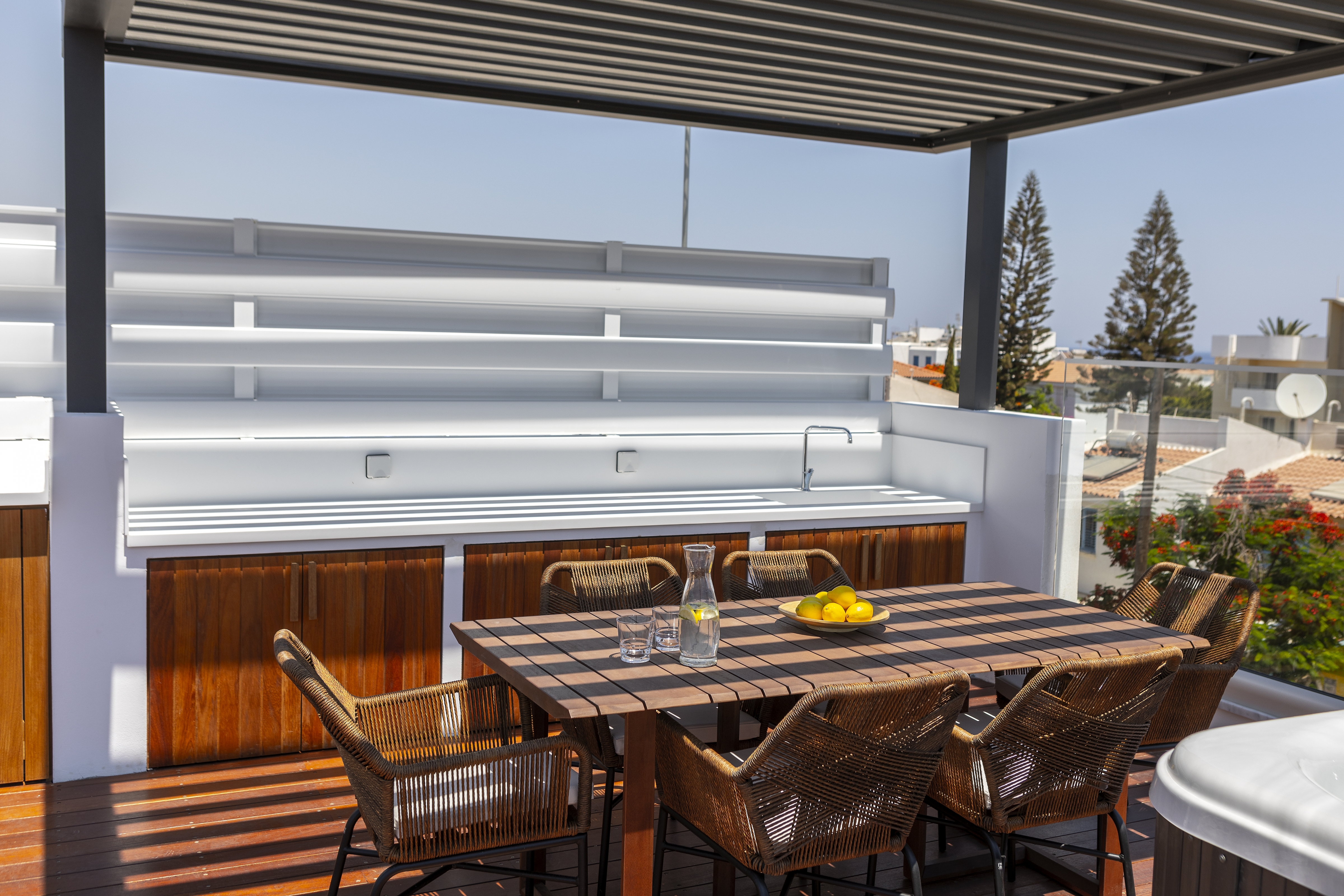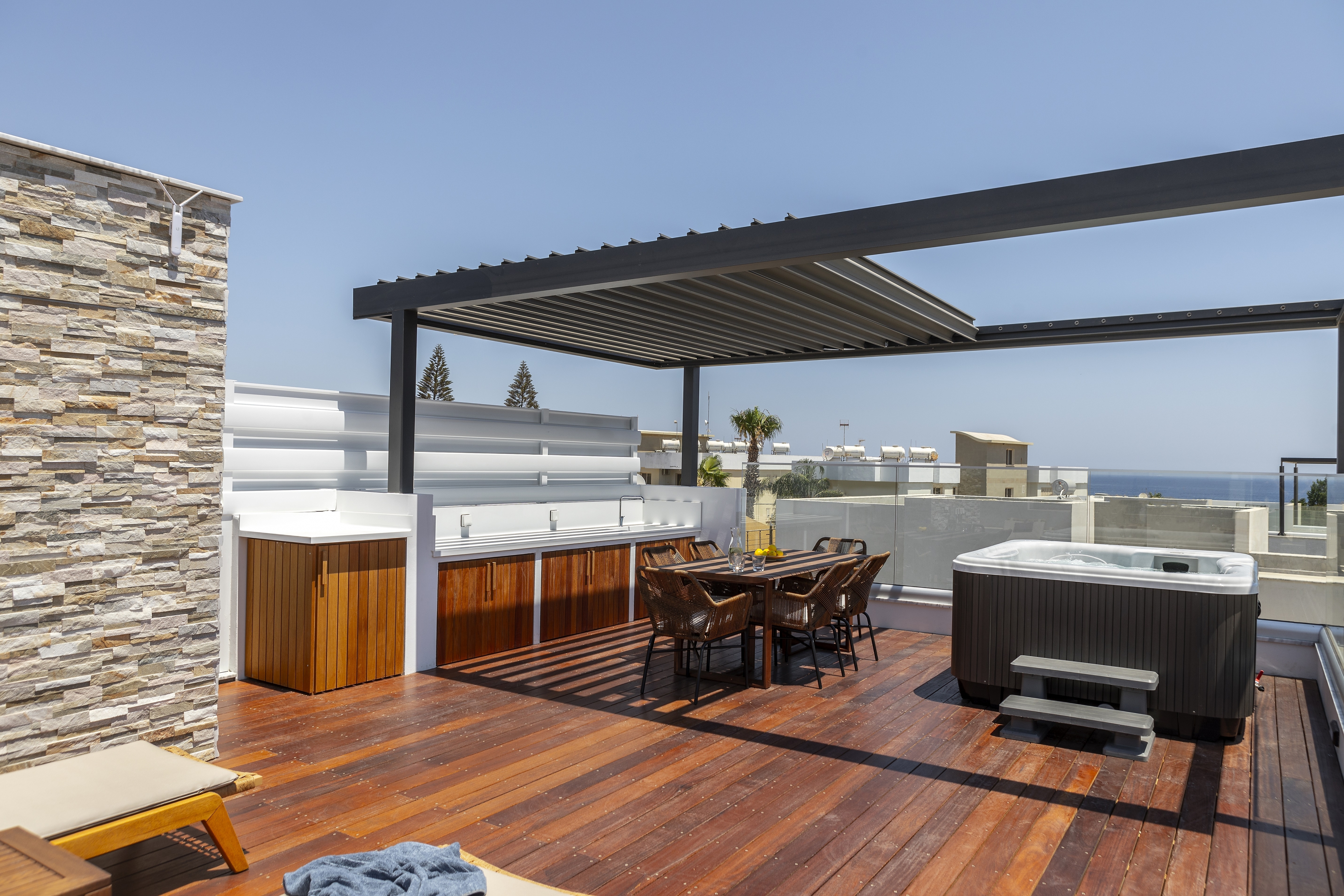 - джакузи на открытом воздухе в саду на крыше