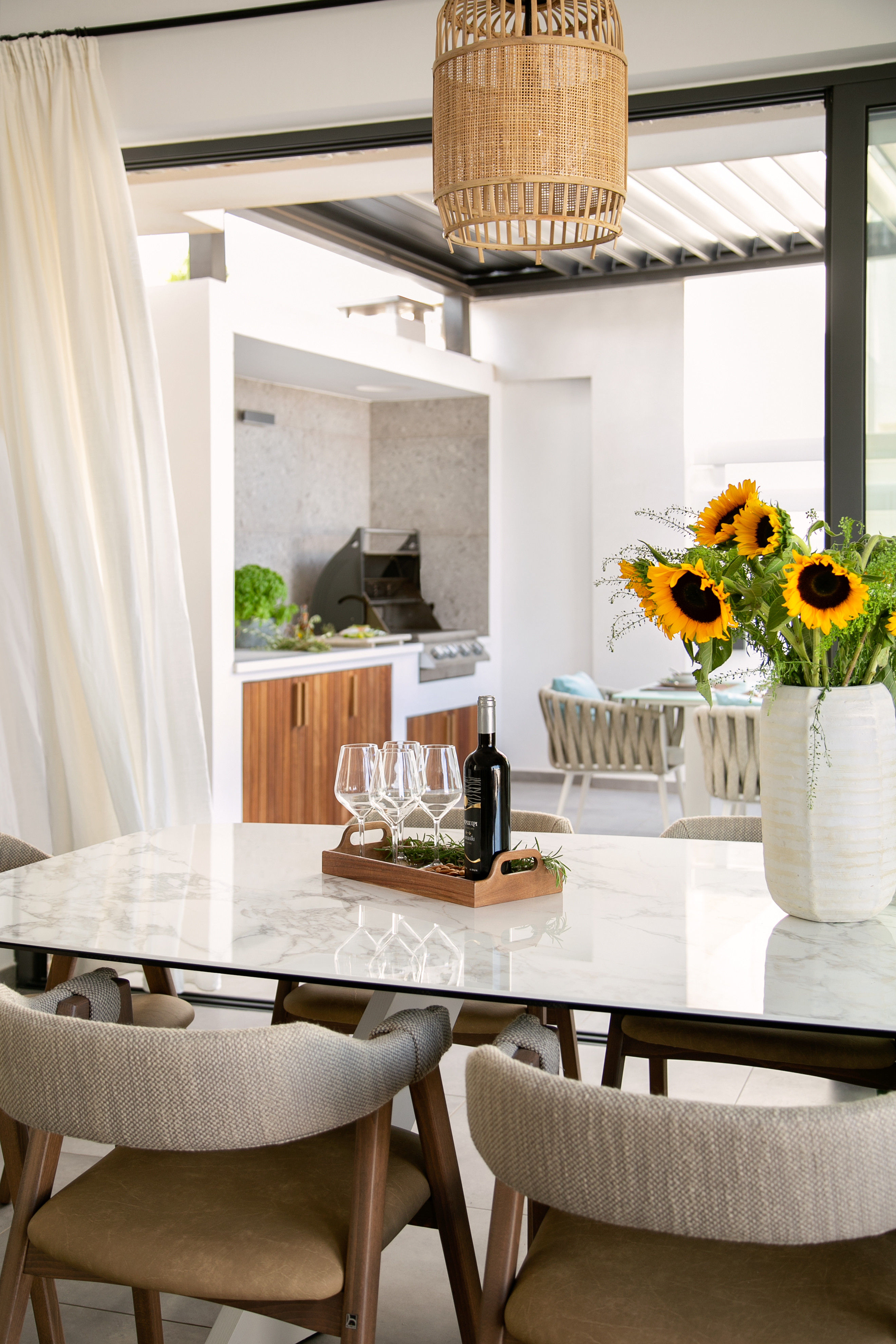 Вилла включает в себя 3 спальни, кухню и гостиную.
